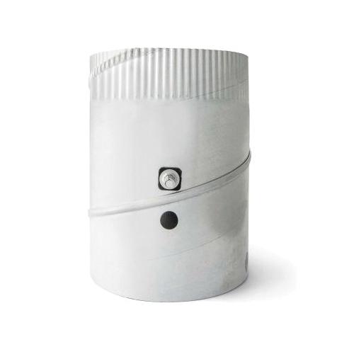 The EARD is a round damper with a 24 V powered open/spring closed motor. It is used for fresh air intake for ventilation or for combustion make-up air.