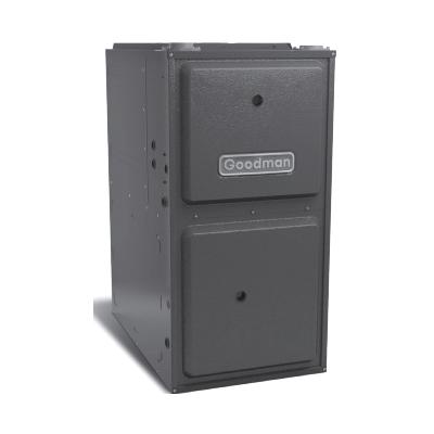 Goodman® Gas Furnace, Model: GM9S92, 80000 Btu/hr Input, 73680 Btu/hr Output, 115 VAC, 14.1 A, 1600 cfm Rating, 3/4 hp, 92 % AFUE Rating, 1 ph, 60 Hz, 1 Stage, Upflow, Horizontal, FNPT Connection, 1/2 in Connection, Natural Gas Fuel, 4 Burners, 9 Speed, 10 in Dia x 10 in W Blower, 34-1/2 in H x 21 in W x 28-3/4 in D Cabinet Dimensions, ECM Motor, Vent, Ducted or Ductless: Vent, 2 to 3 in Dia Vent, 15 A Fuse Rating, 40 VA Transformer Rating, Silicon Nitride Ignition, Aluminized Steel/Steel, 35 to 65 deg F Temperature Rise