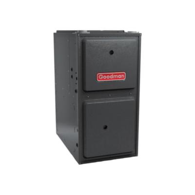 Goodman® Gas Furnace, Model: GR9S92, 100000 Btu/hr Input BTU Rating, 92100 Btu/hr Output BTU Rating, 115 V, 13.7 A, 1600 cfm Rating, 3/4 hp Rating, 92 % AFUE, 1 ph, 60 Hz, 1 Stage, Horizontal/Upflow Configuration, FPT Connection Type, 1/2 in Connection, Natural Gas, 5 Burners, 9 Speed, 10 x 10 in Blower Size, 34-1/2 in H x 21 in W x 28-3/4 in D Cabinet Dimensions, ECM Motor, 1075 rpm Rotational Speed, Vent, Ducted or Ductless, 2 to 3 in Vent Size, 20 A Fuse, 40 VA Transformer, Silicon Nitride Ignition, Steel, 35 to 65 deg F Rise, Domestic