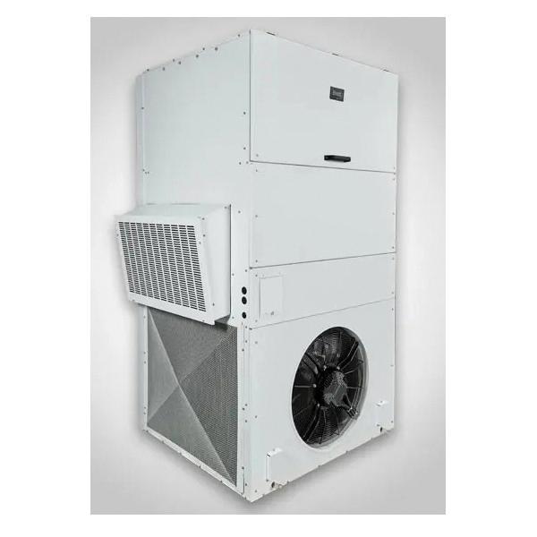 The MEGA-TEC is designed for applications requiring a large amount of sensible cooling capacity and limited wall space. Dual refrigeration circuits and a total of three stages with the lowest stage less than 35% of the total capacity provide cooling for an area with a varying heat load. MEGA-TEC provides an AHRI certified 10+ EER solution that meets D.O.E. requirements and the efficiency ratings of state and national codes. Industrial grade indoor and outdoor fans provide years of trouble-free service. An optional economizer provides full-flow outdoor air intake and room exhaust based on outside temperature or enthalpy.