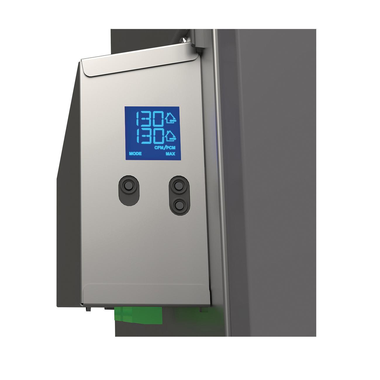 • Unit setup, balancing and diagnostics are made easy with complete control using the integrated LCD screen providing real-time airflow measurements, automatic system balancing and simple diagnostic codes