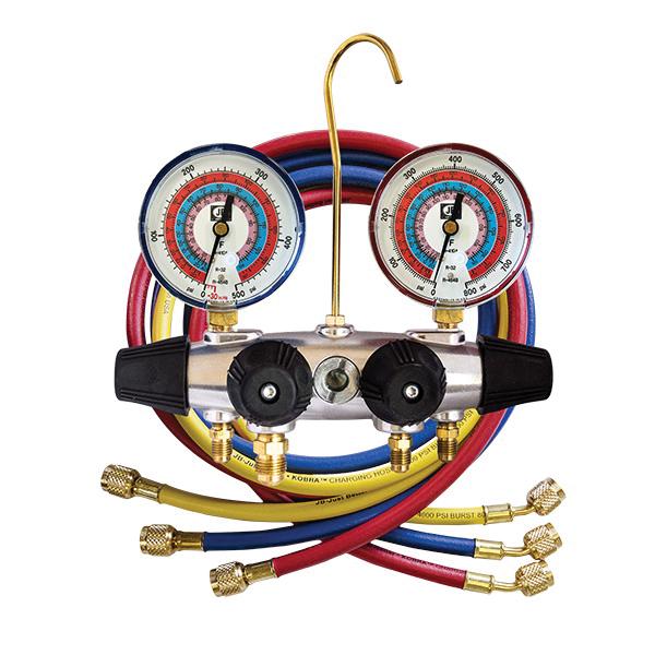 40% Faster than leading 4-valve manifolds. The American made ZEPPELIN® series of aluminum manifolds features durable molded "soft grip" rubber handles with fingertip grooves for easy opening and closing while the improved stem design means "full open" in only 2-1/2 turns. The aluminum ZEPPELIN® series, also available in 2-valve, incorporates cutting edge styling and technology to significantly reduce the weight of the manifold.
