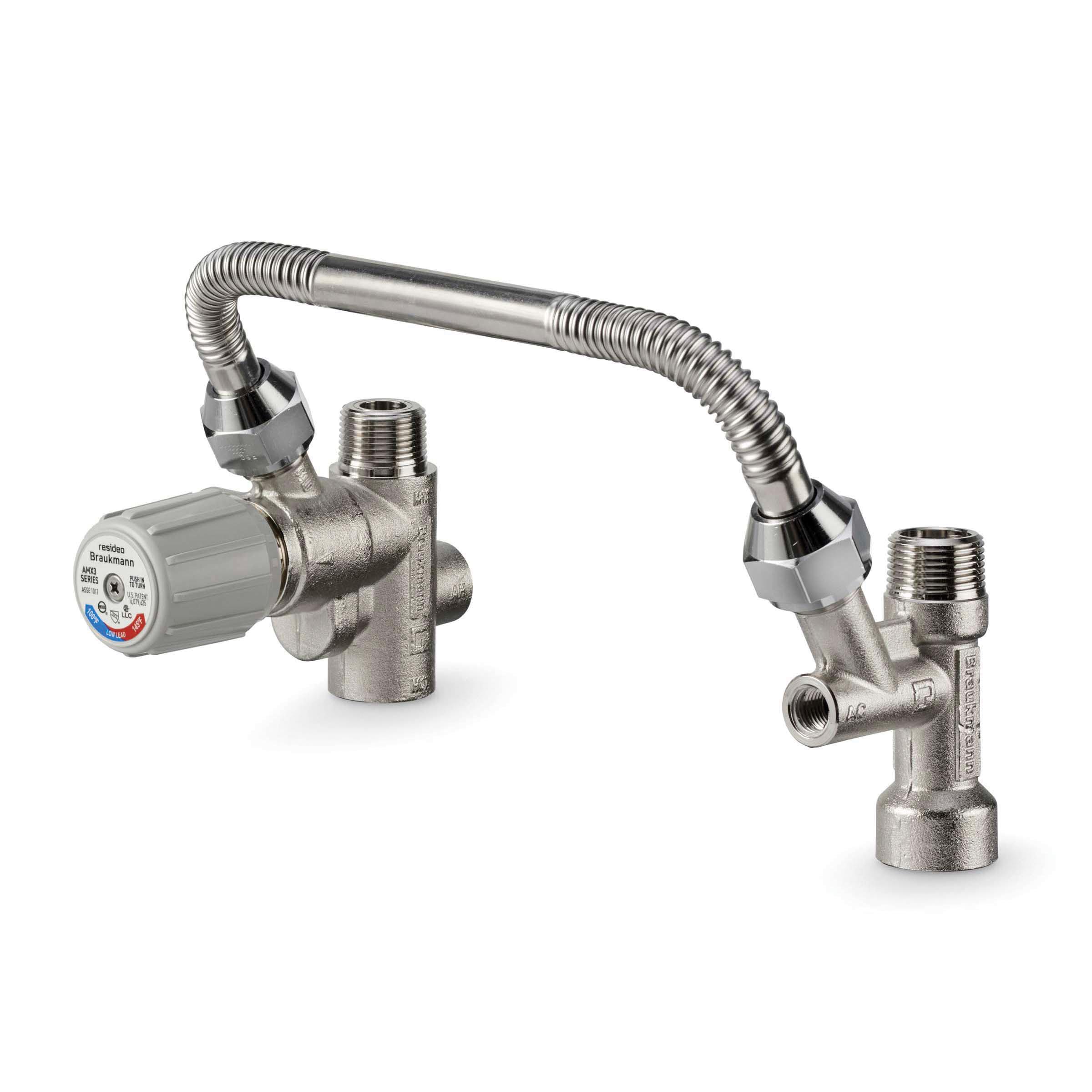 AMX300 series DirectConnect™ kits from resideo reduce installation time while providing industry leading mixing valve technology, which offers excellent temperature stability and control and minimizes scalding risk to building occupants.