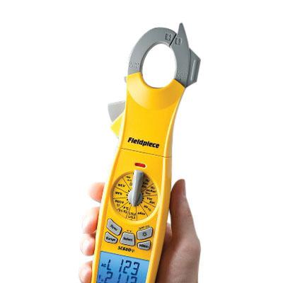Fieldpiece Clamp Meter, 600 V, 400 A, 50 MOhm Resistance, 1.2 in Jaw, 10000, 10 to 400 Hz, Backlit Display, 2% AC Current Accuracy, 0.5%, 1.2% Voltage Accuracy, CAT III 600 V, 9 V, 32 to 122 deg F Operating, 10000 uF, 3% Capacitance Accuracy, 1%, 2% DC Current Accuracy, 1% Resistance Accuracy, 0.01 A, 0.0001 V, 0.01 Ohm, 0.00001 uF Resolution, +/-1 deg F Temperature Accuracy, -58 to 2372 deg F, Additional Information: 100 hr Battery Life, Alkaline Battery Type