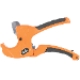 KLEIN TOOLS® Pipe Cutter, 1-5/8 in Maximum Pipe/Tube Diameter, 1-1/4 in Minimum Pipe/Tube Diameter, PVC Pipe/Tube Material, Ratchet Blade, Steel Blade, Comfort Grip Handle, 8.9 in Overall Length, 3.9 in Overall Width, For Use With: SCH 40/80 PVC, CPVC, PEX Pipes, Additional Information: 1.1 in H Dimensions