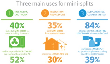 There was a recent survey of homeowners who have purchased a mini-split system within the past 1-5 years. The respondents represented a large sample of people across the U.S. in different climate zones, which provided a good understanding of how mini-splits are being applied throughout the country. After reviewing the data, we found three main reasons that people opt for a mini-split.